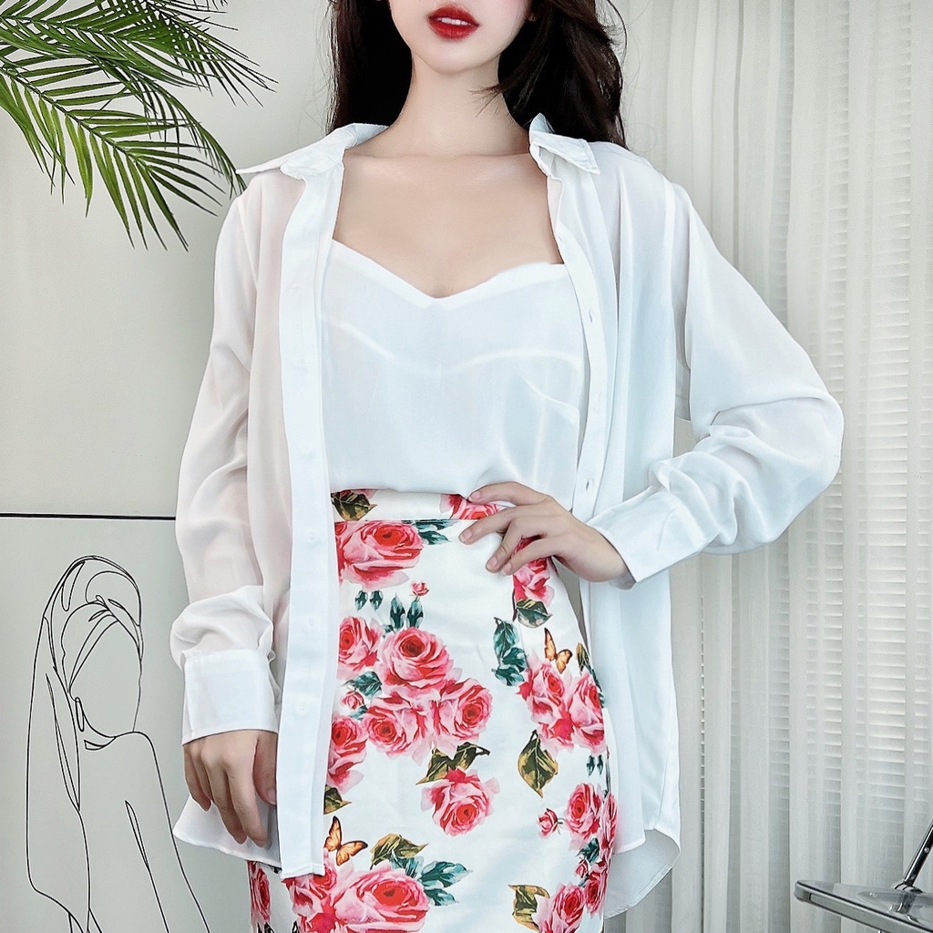 •Size S: V1: 108cm; Áo sơ mi tà trước: 65cm; tay: 60cm; vòng tay: 26cm;