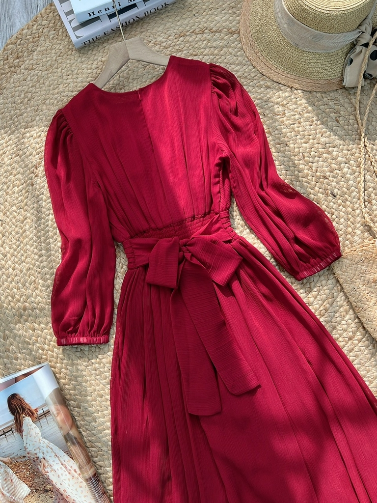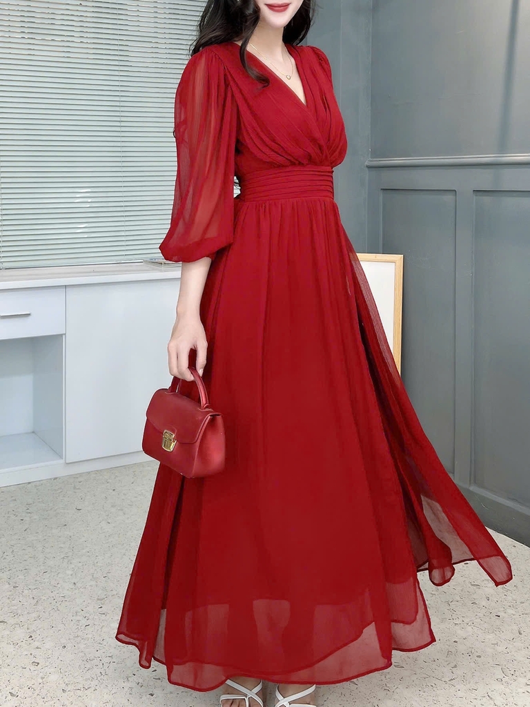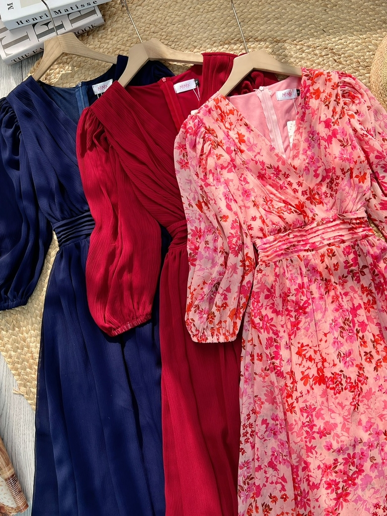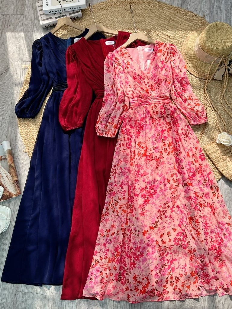 • Size M: Ngực 100 cm; Eo váy 80–100 cm; Mông 100 cm; Đầm dài 135 cm.