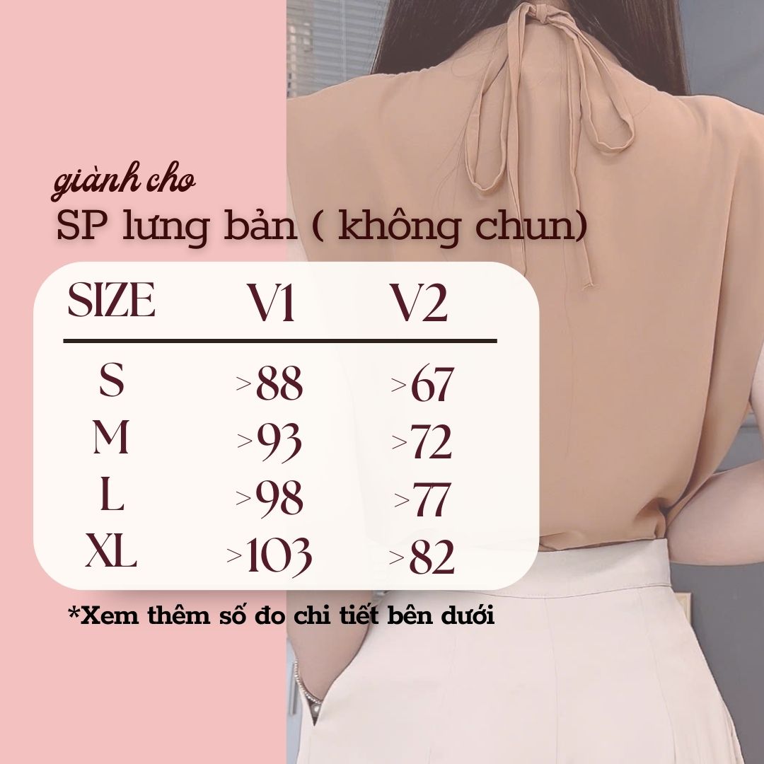 • Size S: V1:<88 cm; Eo áo:<72 cm; Eo quần:<70 cm; V3:<88 cm; Áo dài:< 46cm; Quần dài:<97cm; Vai:< 33cm; Đùi:< 50cm; Ống:< 56cm;