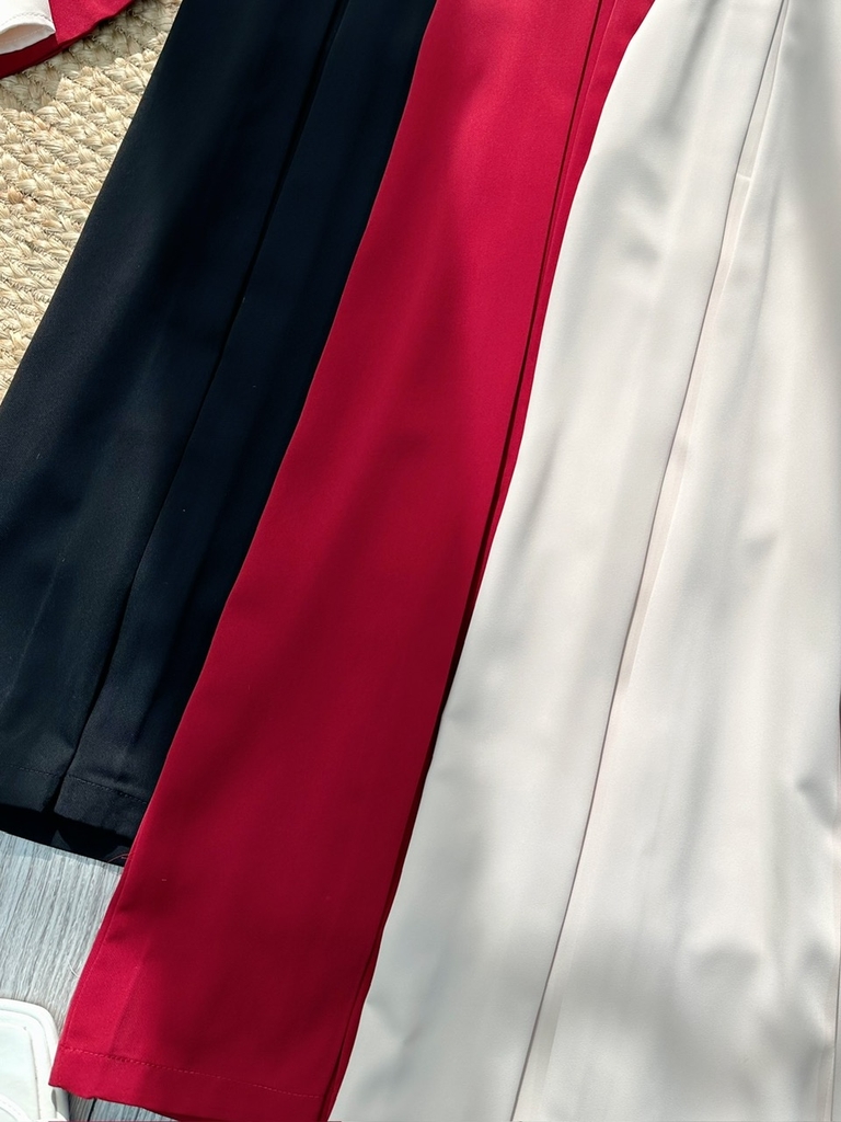 • Size S: Ngực: 90 cm; Eo áo: 82 cm; Eo quần: 64–77 cm; Mông: 100 cm; Đùi/ống: 42 cm; Vai: 33 cm; Dài áo: 50 cm; Dài quần: 99 cm.