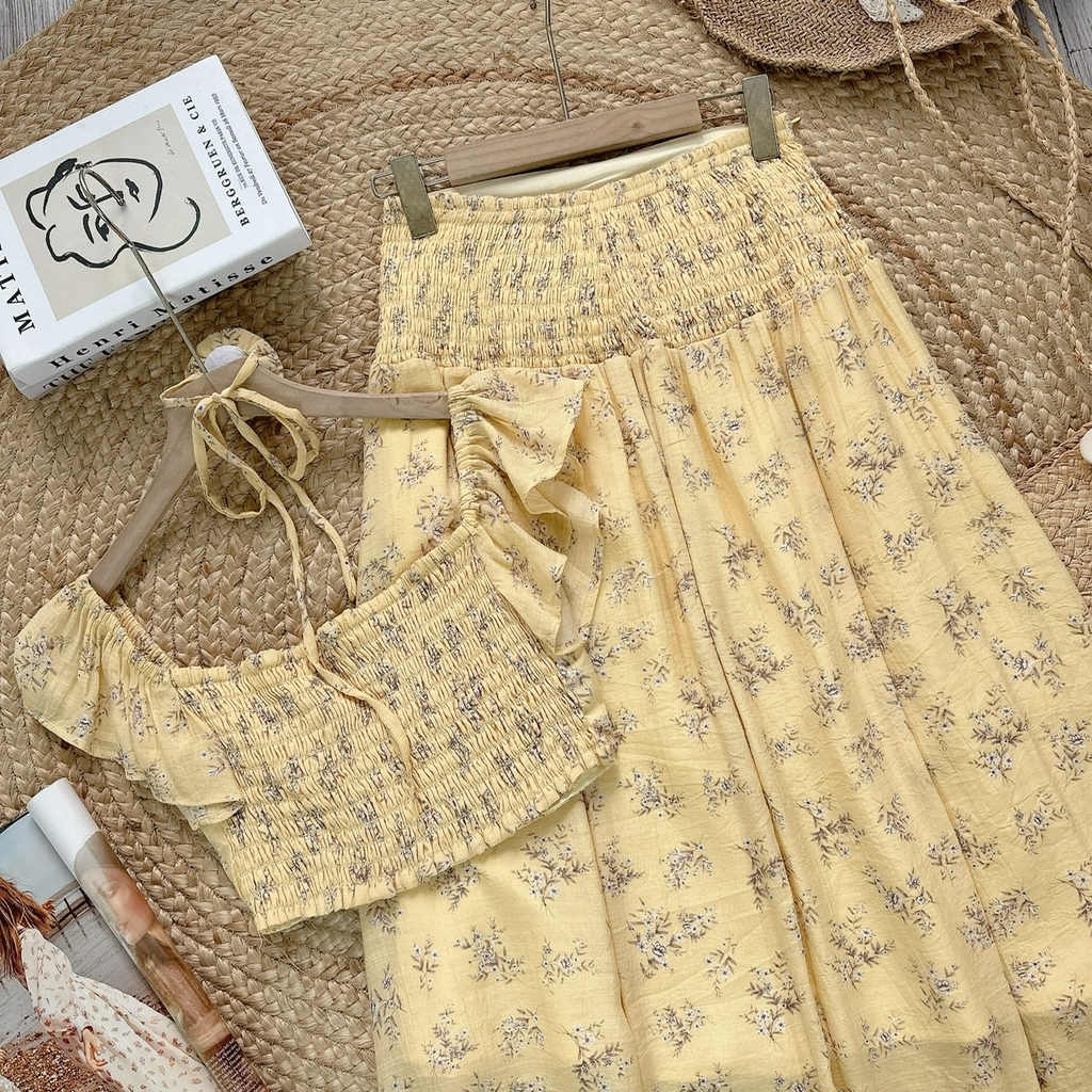 • Size M: Ngực = Eo áo: 66–90 cm | Eo váy: 68–95 cm | Mông: Trên 110 cm | Vai + bắp tay: 31 cm | Dài áo: 32 cm | Dài váy: 94 cm