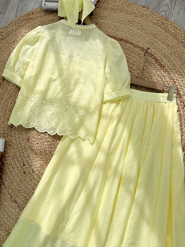 • Size L: Ngực 110 cm; Eo váy 70–98 cm; Mông 120 cm; Vai 37 cm; Áo 44 cm; Váy 90 cm;