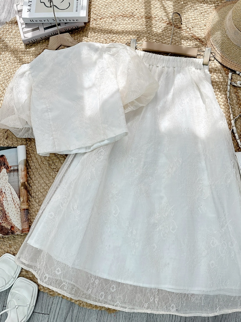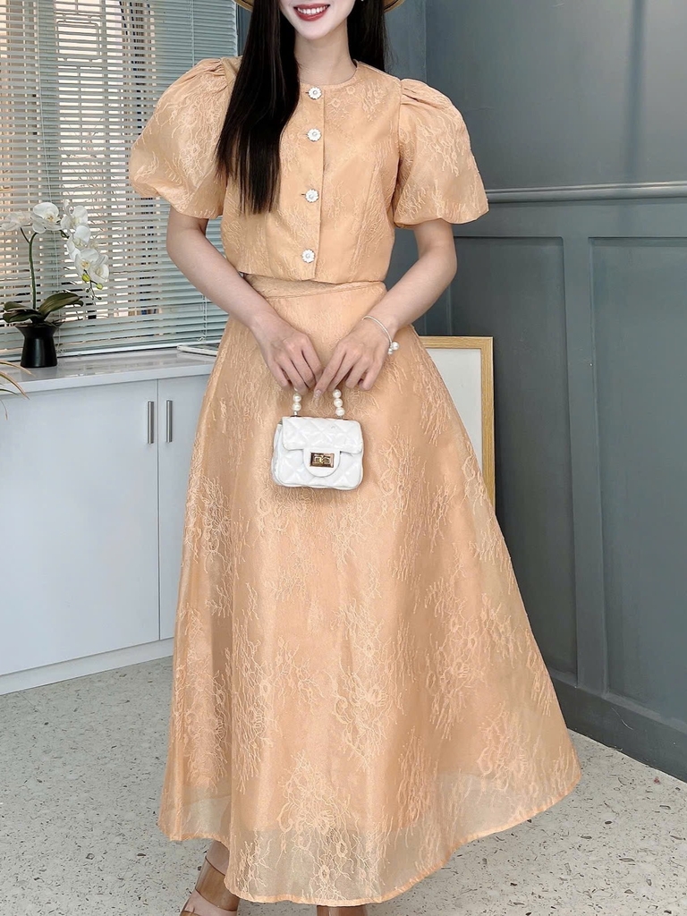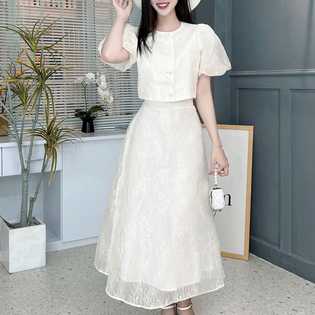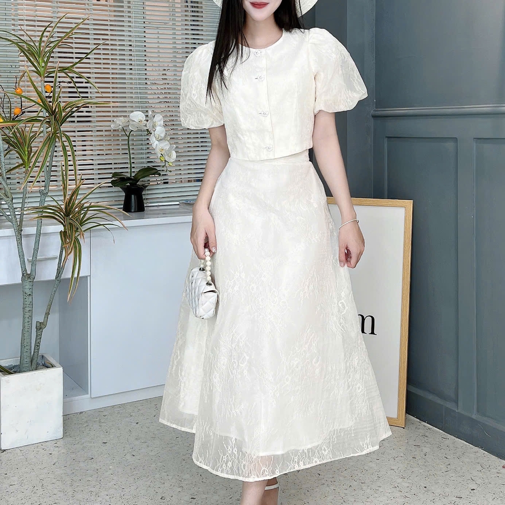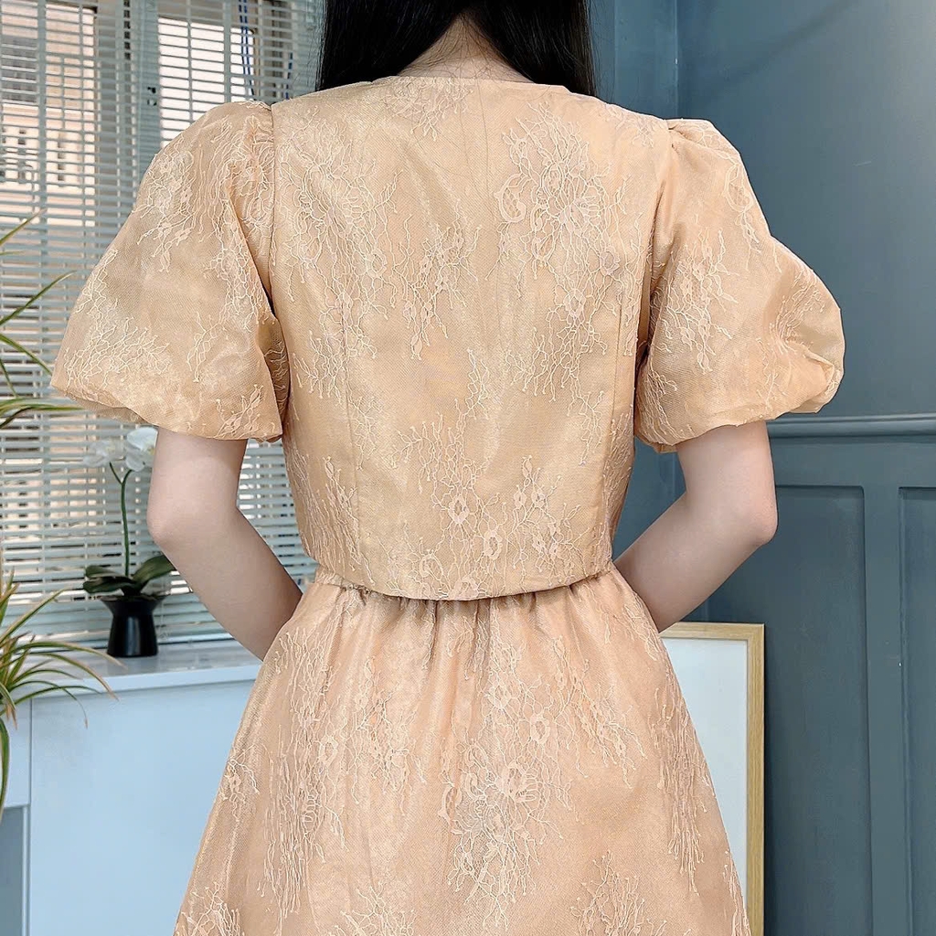 • Size S: Ngực: 88cm, Eo áo: 78cm, Eo váy: 56-72cm, Mông: 90cm, Vai: 30cm, Bắp tay: 36cm, Áo: 40cm, Váy: 87cm (Lót :78cm).